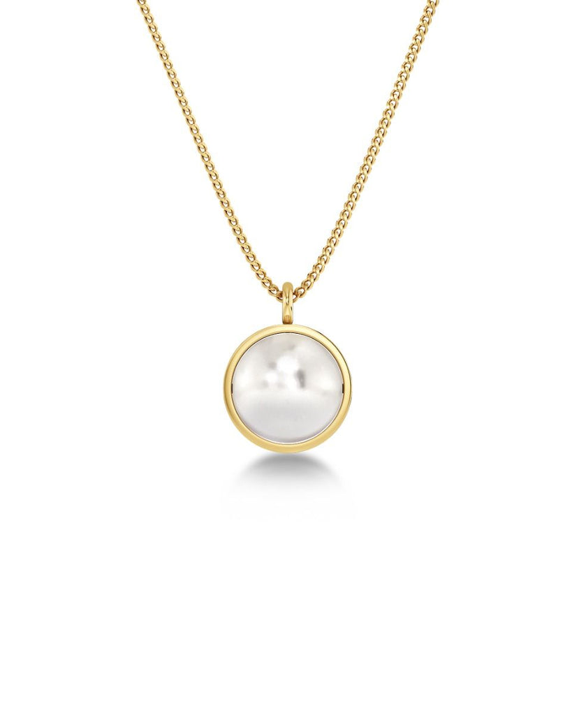 Timeless Gabrielle combines chains and beads for a bright modern look. In this stylish necklace, the soft mother-of-pearl bead hangs beautifully from a neat rail attached to the chain. Seen here in 14K gold plating. A stylish match with the cool hoops, fine bracelets or classic ring from the same line.