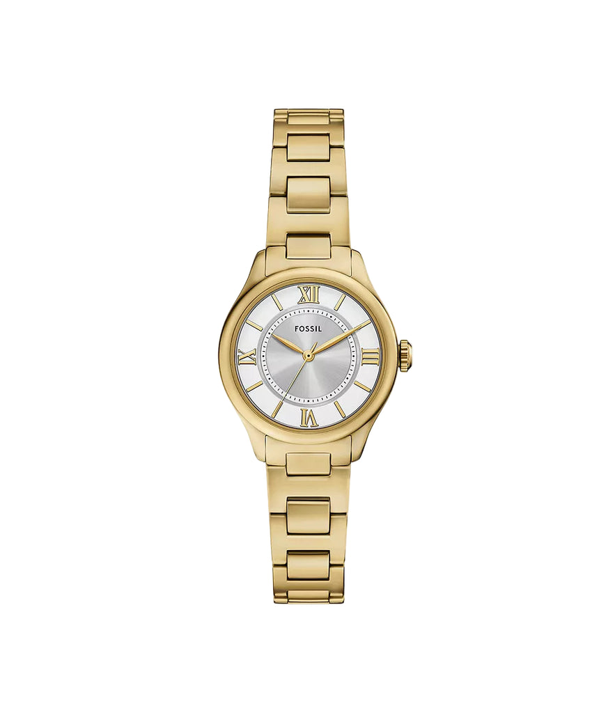 This Fossil watch has a case made of stainless steel with a diameter of 28 mm and is fitted with a stainless steel band. Inside the case lies a Seiko Instruments Inc. movement and the watch features a Mineral crystal.