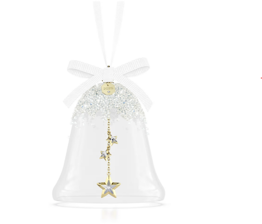 Ring in the holiday season with the Swarovski Annual Edition Bell Ornament for 2025. The immaculate glass design is covered with approximately 1,300 crystals, while the inside contains a clapper of stars produced with 109 facets and a champagne gold-tone metal finish. The piece is suspended from a white grosgrain ribbon with a 2025 engraving on the tag. It’s a joyful mix of delicate beauty and harmonious sound to enhance any festive décor. Decoration object. Not a toy. Not suitable for children under 15.