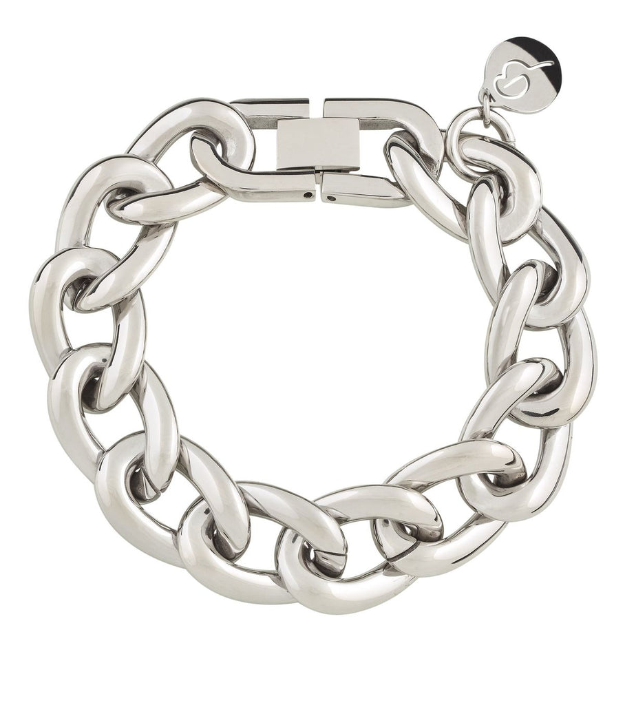 Bond bracelet is a robust and very stylish chain that can be seen here in shiny stainless steel. Bond bracelet also features a lovely lock that makes it easy to remove the bracelet when needed. Combine with Bond necklace and earrings for a complete look.