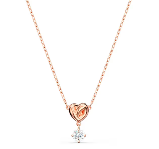 Classic chic meets modern design – this rose-gold tone plated Swarovski pendant is a perfect expression of our Lifelong Heart series. The heart-shaped centrepiece, and the large stone set beneath it, sparkle majestically. Delightful details add to the glamorous look and make this masterpiece the perfect choice for elegant outfits. A great gift for fashion lovers. The pendant comes on a chain.