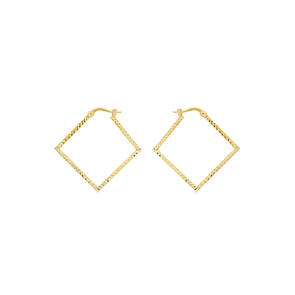 9ct Yellow Gold Diamond Cut Square Creole Earrings