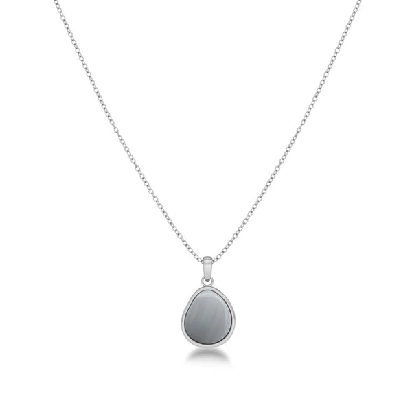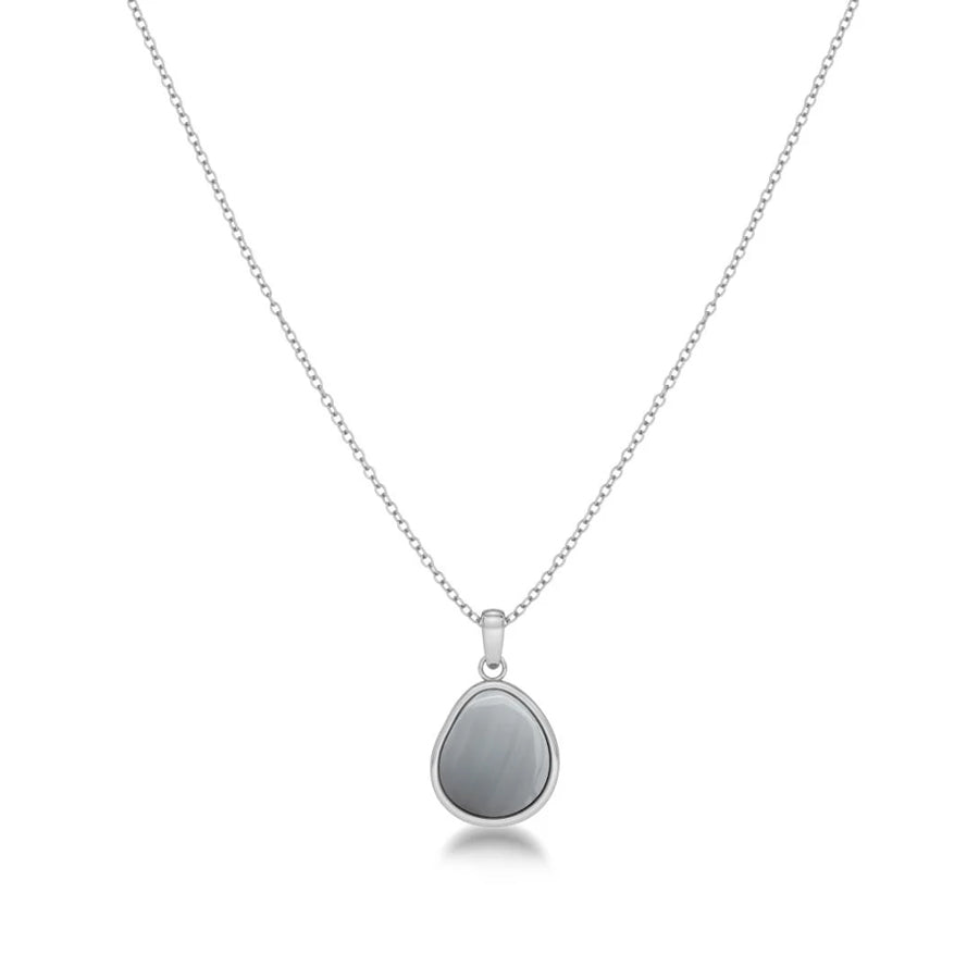 The Agatha Necklace features a stylish cool grey natural stone in a soft irregular shape. The necklace will quickly become a favourite and looks great when paired with the earrings from the same collection. The Agatha Necklace has an anchor chain and a polished agate set in shiny stainless steel.