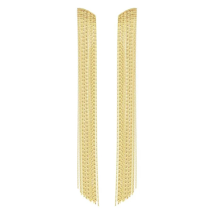 Elysian fringe earrings 126644 sparkle with multiple strands of chains creating a beautiful glittering surface. The surface of the long earrings is finished with 14 karat gold. Length: 80 mm.
