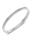 The Josefin Bangle, a timeless piece from our classic Josefin line, features clear stones elegantly set in a narrow recessed stripe on shiny metal. Perfect for daily wear, this bracelet can also be layered with other pieces for a more striking look. Seen here in shiny stainless steel, the Josefin Bangle showcases stones on the upper half, adding a touch of sparkle to your ensemble.