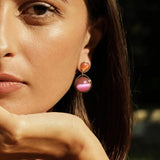 The gold-tone Edblad Summit Earrings Pink S 126710 are adorned with bright fuchsia and orange cabochon glass beads, set in a gold-tone frame. The colorful look is finished with 14 karat gold plating. The earrings measure 31 mm.