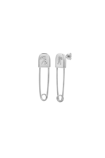 Stamped with the beloved Runaway Girl see the full sized safety pin earrings reimagined as studs in sterling silver. These fully functioning safety pins create the perfect studs, symbolising resilience while giving a nod to the golden age of '70s punk.