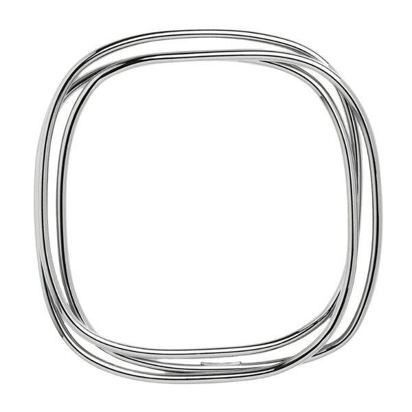The Galaxy is an elegant composition of three interlinked bangles with a touch of modern geometry. Their rounded square forms evoke the cyclical nature of the cosmos while preserving a sense of fluidity. Like the interwoven paths of stars, each bangle moves within the whole, creating a sense of unity and balance. Musical to wear, the Galaxy Bangle celebrates our interconnectedness to all things and the vastness of possibilities.