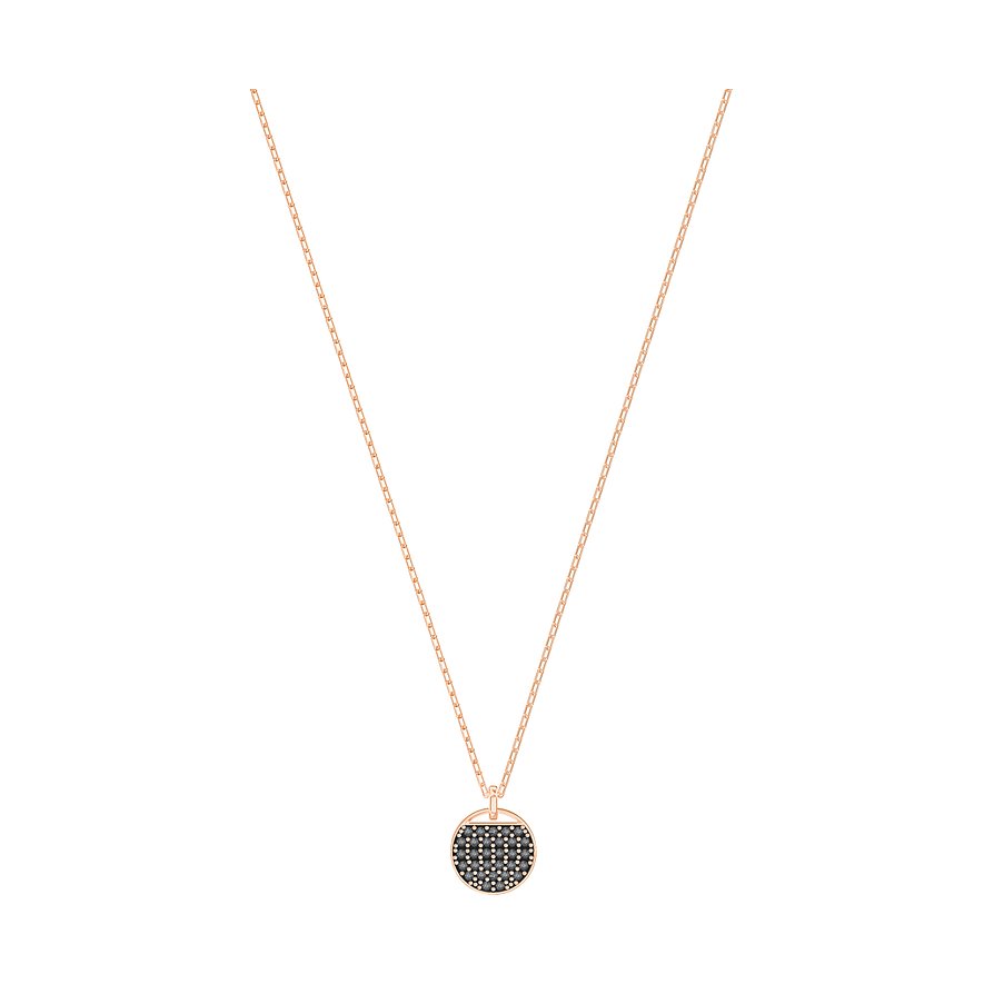 Simplicity seems to be the motto that inspired Swarovski to create this puristic necklace. Its round pendant is adorned with black crystals, held by a delicate anchor chain. The metal, with its lustrous rose finish, completes the accessory with a lobster clasp. We envision this piece of jewelry in every lady's everyday wardrobe, as it's modern, simple,and envelops you with a touch of luxury. It can be worn with other treasures from the Ginger collection to match. Or you can style the necklace with favorite pieces from your jewelry box. The main thing is that the result remains elegant and fashionable.