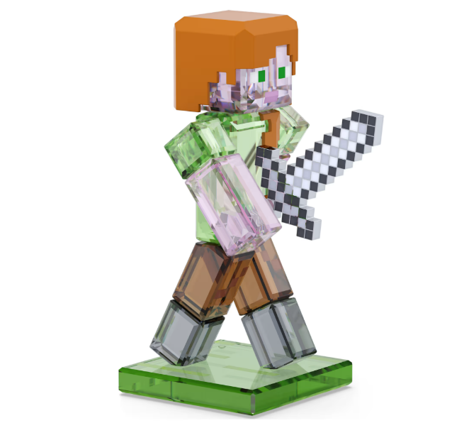 Swarovski and Minecraft have teamed up to bring the whimsical charm of the Overworld to life. Inspired by the fearless heroine, this Minecraft Alex figurine is made from full-cut crystals to replicate Minecraft’s iconic blocky style. Wearing her signature green tunic and brown trousers, Alex is charging into adventure with her trusty sword. The figurine features 426 facets as well as metallic accents for Alex’s red hair and sword, making it a gift that’s sure to delight even the most discerning of Minecrafters. Because adventures are best shared, Alex can be teamed up with other figurines from Swarovski’s Minecraft collection. Decoration object. Not a toy. Not suitable for children under 15.