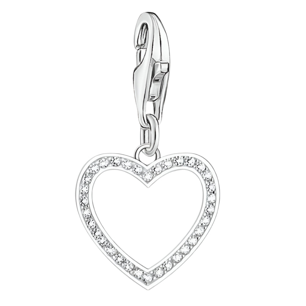 - Charm made from recycled 925 silver in the shape of an open heart, set all round with sparkling white zirconia stones